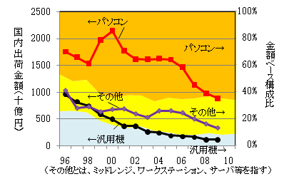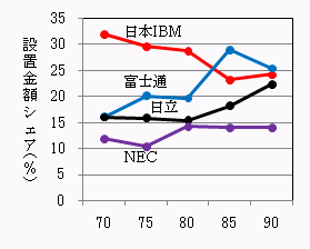 ![]() 汎用コンピュータ設置金額シェアの推移 出典:『コンピュートピア』各年1月号 |