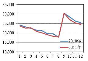 家庭用プリンタの需要は年賀状印刷の11月・12月前半にピークになる。それに対応して、多くのメーカーは秋口に新製品を発表する。発表後、時間とともに小売価格は低下する。そのため、7月・8月頃に最安値になる傾向がある。