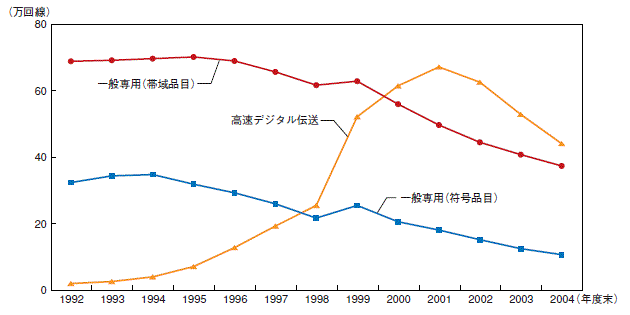 このような施策により、専用線数は2000年代に入るまで着実に増加していった。