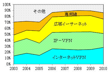 これにより、多くの企業での通信回線は専用線主体からインターネット回線(後述のVPNを含めて)主体へと移行した。