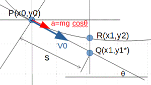 点P(x0,y0) の接線方向は y' = dy/dx です。接線方向の速度を v0 とします。