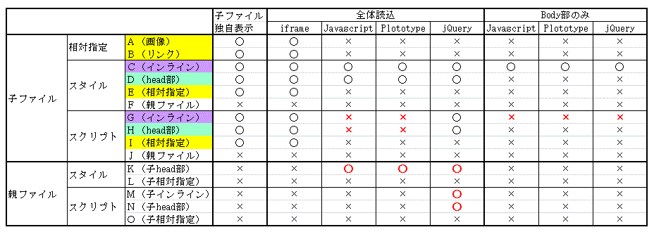 要件1はもぼ解決していると思うので。ここでは、要件2と要件3について、子ファイルを全体読込した場合と、部分(body部のみ)読込をした場合について検討する。
