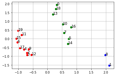 ax.annotate(txt, (df.f1[i], df.f2[i]), size=12) # 点の右上に表示されます。