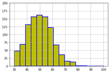 range=(30, 100), # 棒の最小値と最大値 はみ出した棒は表示されない
