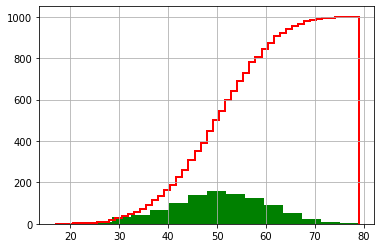 大量データが対象になるので、ここでは正規乱数を発生させて入力データ x とします。 np.random.normal(平均, 標準偏差, 個数) x = np.random.normal(50, 10, 1000) そのため、ここに掲げたグラフと、実行した結果のグラフは一致しません。