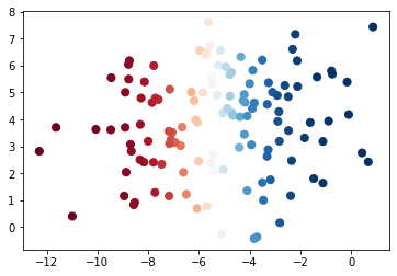 plt.scatter(X_test[:, 0], X_test[:, 1], c=Y_prob[:, 0], s=50, cmap='RdBu')
