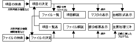 情報検索系システムでは,マスタファイルの項目をキーとして,イベントファイルのレコードを選択・分類・集計する処理が大多数である。従って,情報検索系システムを構築するには,まずマスタファイルの体系化を行い,項目の整理をすることが必要になる。