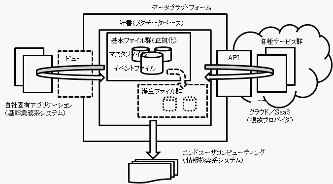 この方法論からの視点では、ここで掲げたファイル群や辞書が「データのプラットフォーム」であり、それを基盤として、個々のサービスを呼び出して活用するようにしたいのです。具体的には、