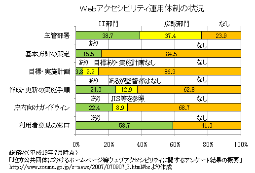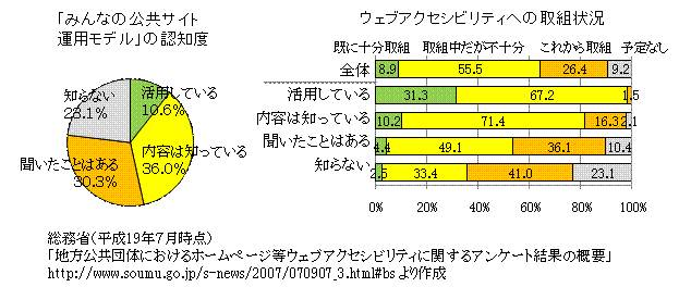 残念なことに、2007年7月時点では、この運用モデルの認識度は不十分で、内容まで理解しているのは半分程度、実際に活用しているのは1割程度になっています。そして、運用モデルの認識度は、Webアクセシビリティへの関心度とかなり関係があることがわかります。