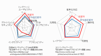 地方自治体Webサイトを調査してランキング付けした結果が多数公表されています。ここでは、日経BPコンサルティング「自治体サイトユーザビリティ調査2005/2006」(