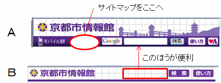少なくとも自治体のWebサイトに芸術性を求めて閲覧する人はいません。きれいな写真やイラストなどは価値がありません。Web技術力を求めて閲覧する人もいません。AjaxなどのWeb2.0技術をどう使っているかなどを調べようとして自治体サイトを研究する人はいないのです。京都市殿のWebサイトは、「京都市情報館」(http://www.city.kyoto.jp/koho/ind_h.htm)です。