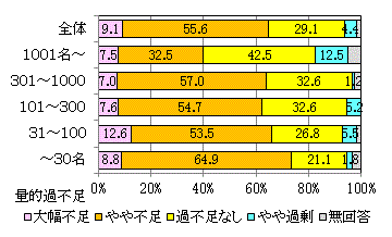 企業規模が大きくなるほど量的不足感が低いのは、大企業のほうが求人しやすいからである。