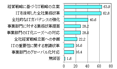 ユーザ企業で増加/減少するIT分野(左図)、 それによるIT部門の重要となる任務(中図)と IT部員に求められる能力(右図) (注)