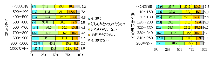 仕事への「やる気」と給与、労働時間の関係 (注)
