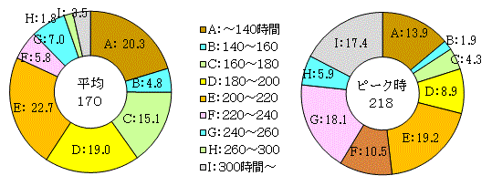 IT関連では、繁閑の差が大きい。システム開発の後期、トラブル対処などに長時間残業が発生する。