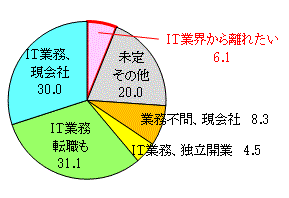 ITエンジニアの将来の希望、IT業界から離れたい人の比率