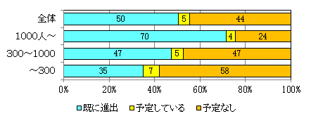 1000名以上の大企業では大部分が海外進出している。 中小企業でも増加してきた。
