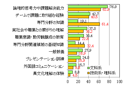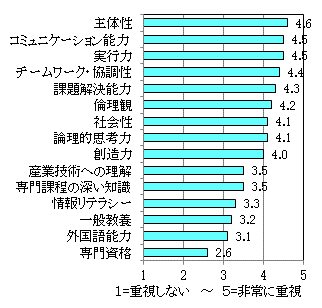大学教育への期待でもそれを反映しており、社会人、企業人としての基本的な能力を修得することを期待している。