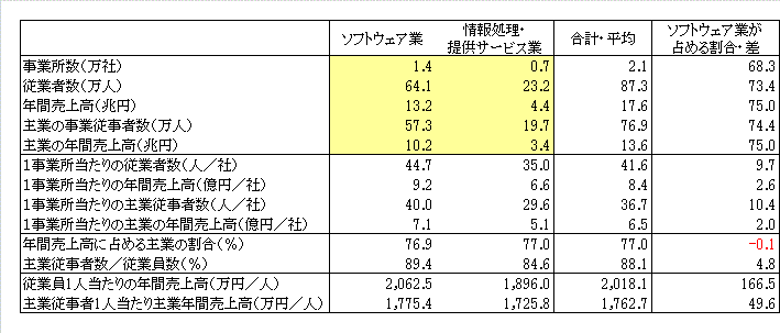 ソフトウェア業と情報処理・提供サービス業の割合はほぼ3:1