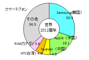 スマートフォンのメーカー別シェア(国内・世界)