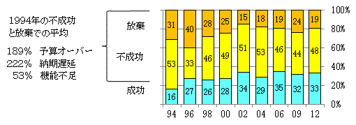 出典: Standish groupのサイト等から加工作図 2012年の「失敗」は、loose(28%)+vague(14)+distant(6)の合計